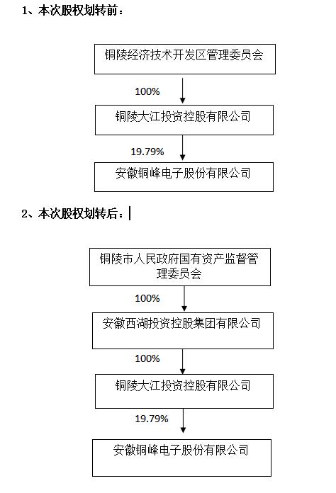 為優(yōu)化國(guó)有資產(chǎn)配置,經(jīng)銅陵市人民政府批準(zhǔn),擬將本公司實(shí)際控制人銅陵經(jīng)濟(jì)技術(shù)開(kāi)發(fā)區(qū)管理委員會(huì)持有的控股股東銅陵大江投資控股有限公司100%股權(quán)劃轉(zhuǎn)至安徽西湖投資控股集團(tuán)有限公司,本次股權(quán)劃股權(quán)劃轉(zhuǎn)事項(xiàng)尚需辦理工商變更手續(xù)。本次股權(quán)劃劃轉(zhuǎn)不觸及要約收購(gòu)。
